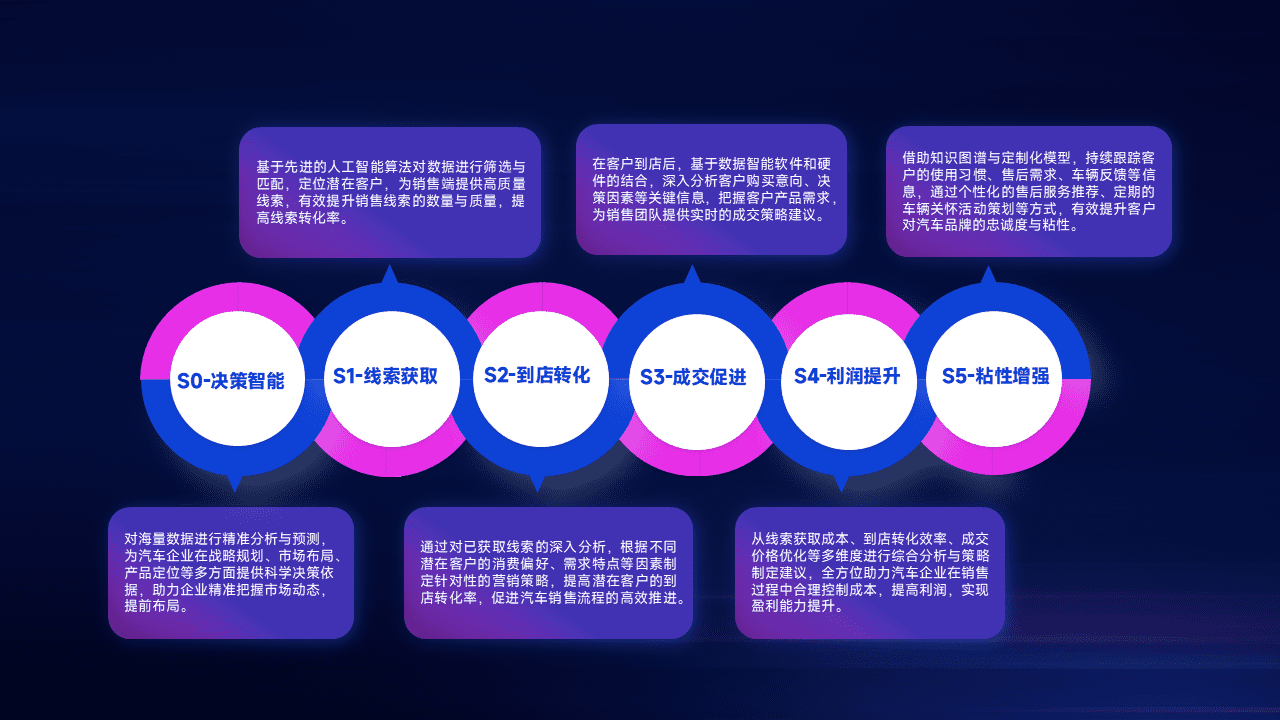 通过拓宽潜在客户来源、、、优化线索分配并提高到店转化率,,,,以增强销售效率。。同时,,,利用线索数据不断优化分析模型,,,,有效提升转化率,,扩大营销影响力。。。
